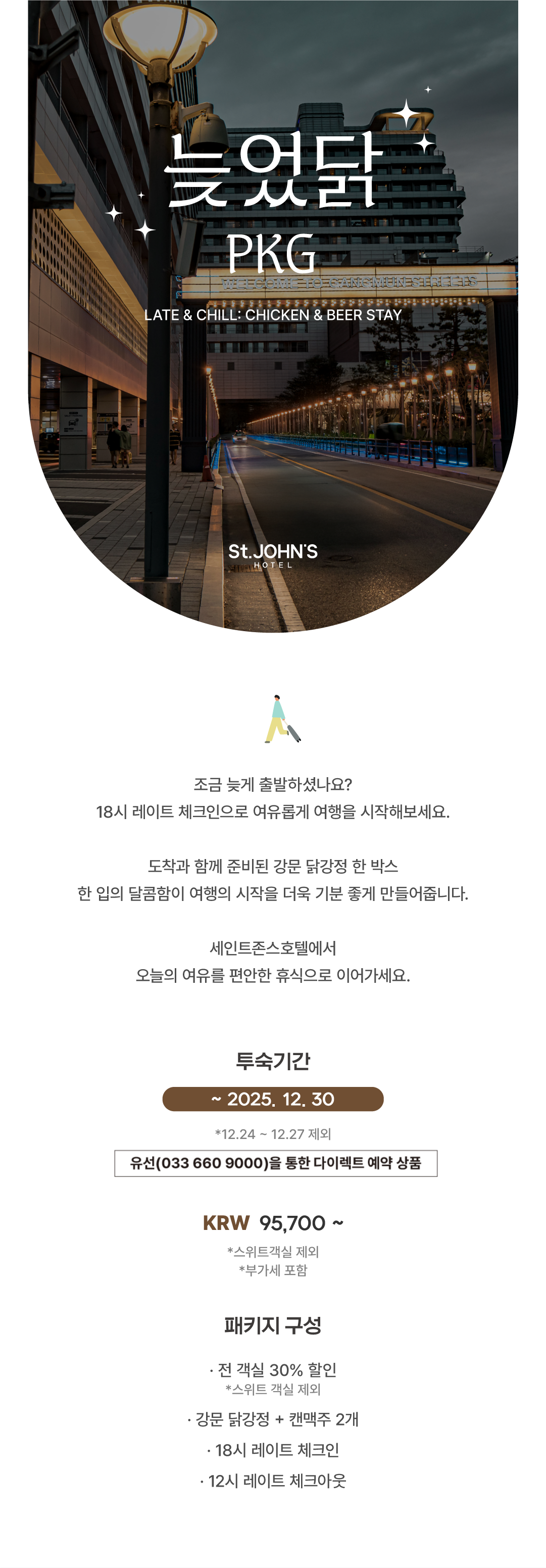 객실 30% 할인+강문 닭강정 + 캔맥주 2개 + 18시 레이트 체크인 + 12시 레이트 체크아웃