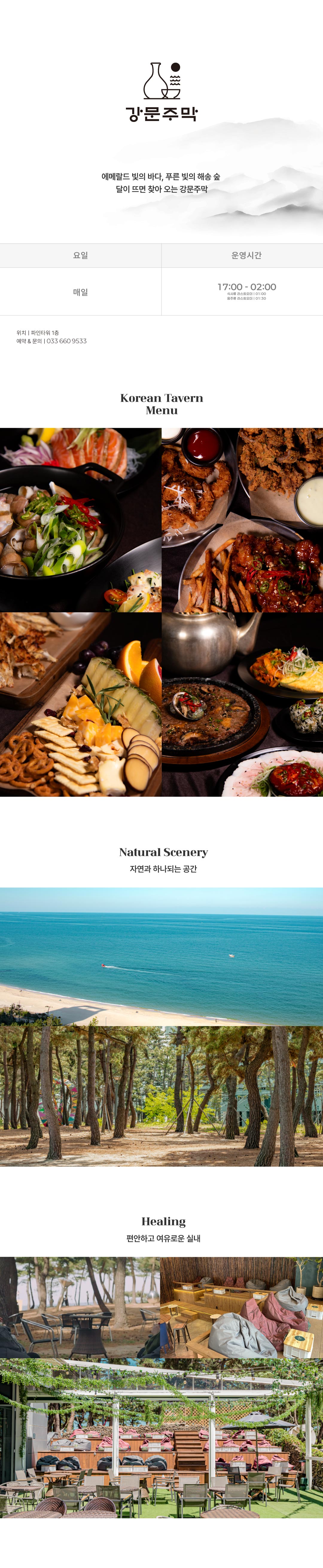 에메랄드 빛의 바다, 푸른 빛의 해송 숲, 달이 뜨면 찾아 오는 강문주막